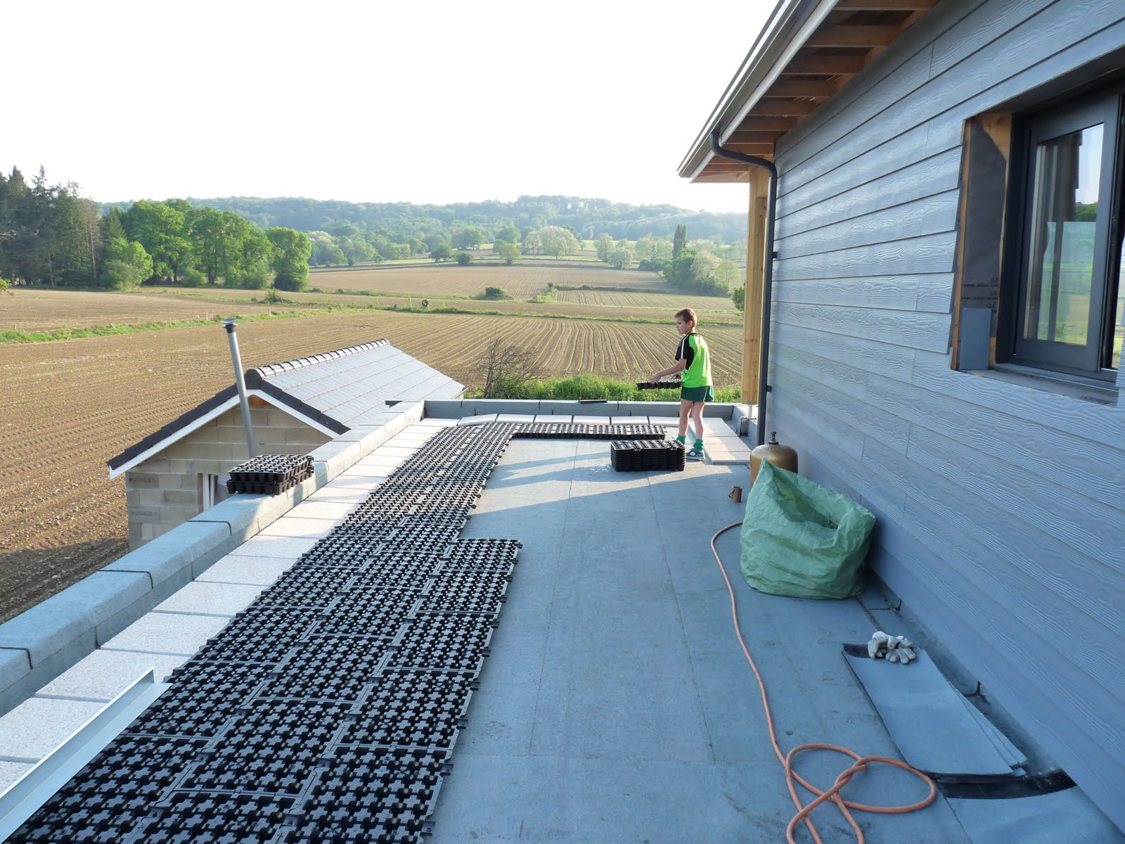 En même temps ils m'ont montré comment poser les dalles et les bacs à eau.